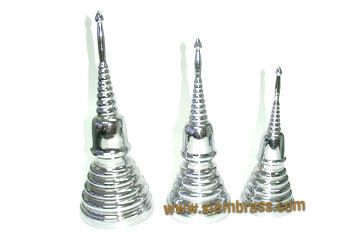 Product Pagoda with chrome Detail Size 5" x 11" Weight(gram) 850 g. Available size 2.5",3",3.5",4",5",6",7",8",10" Material Brass |