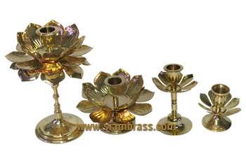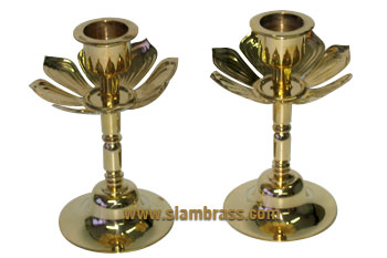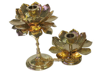 Product Lotus candle stick Detail Size 4" Weight(gram) 200 g. Available size 3",4",short type, tall type Material Brass |