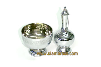 Product Ceremonial water jar with chrome Detail Size 4" x 8" Weight(gram) 580 g. Available size Small,Large Material Brass |